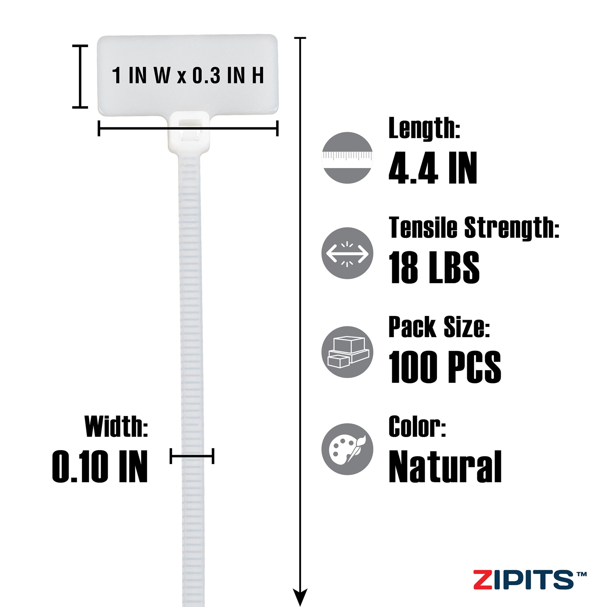 Attache de marquage d'identification pour drapeau de 4,4 po, résistance de 18 lb, 100 pièces, naturel