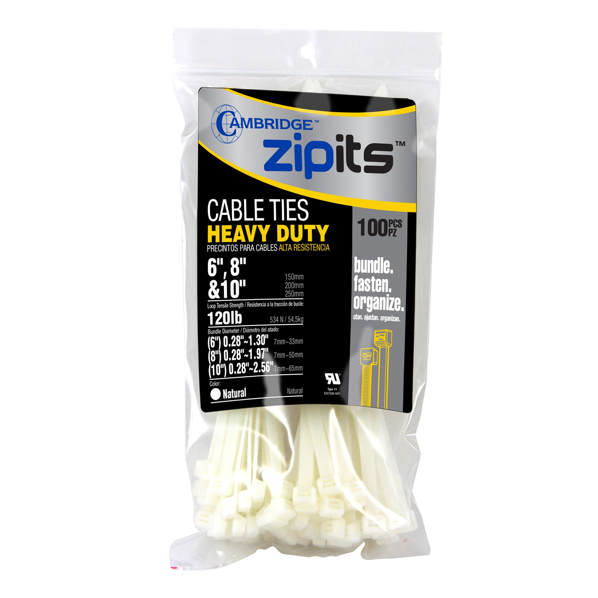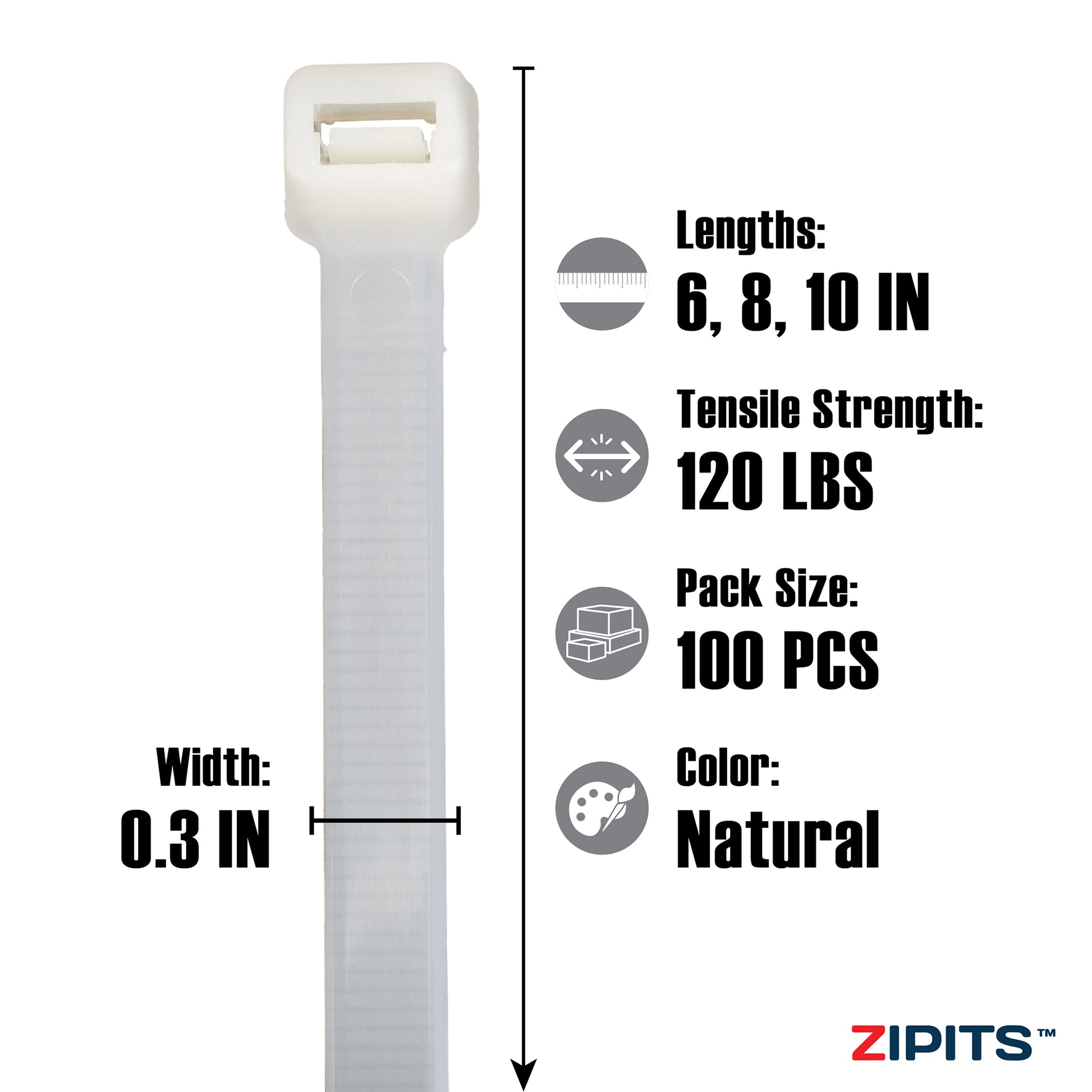 Assortiment de serre-câbles robustes (6 po, 8 po, 10 po), 100 pièces - Naturel